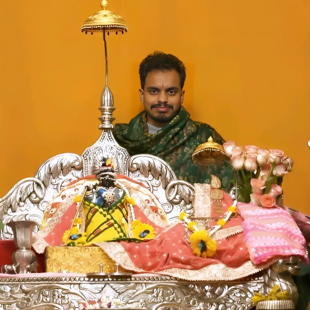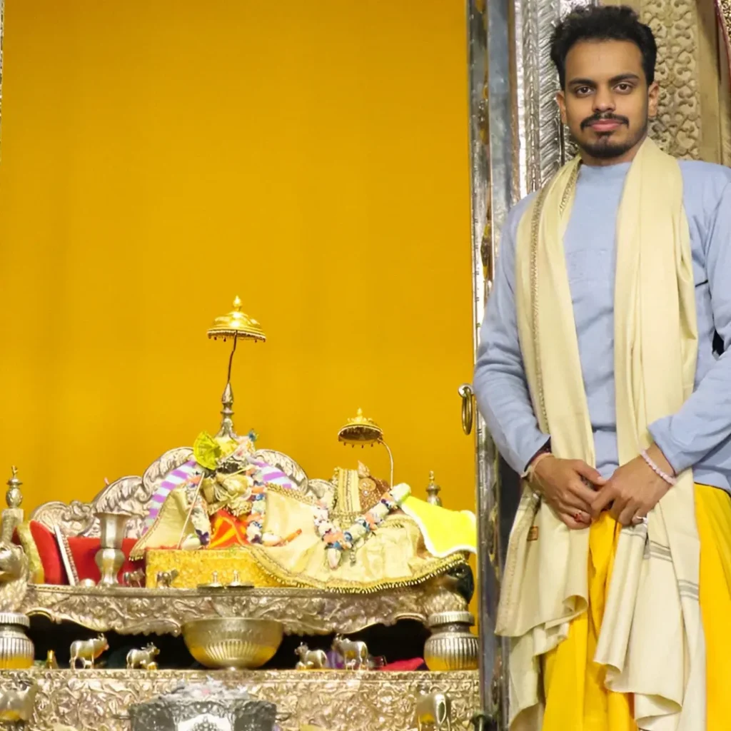 As a Goswami of Shri Radharaman Mandir, it is my privilege to personally take every order to the temple. Before your items reach you, they are lovingly presented at the temple of Shri Radharaman Ji, allowing them to carry the temple’s divine blessings to your home.